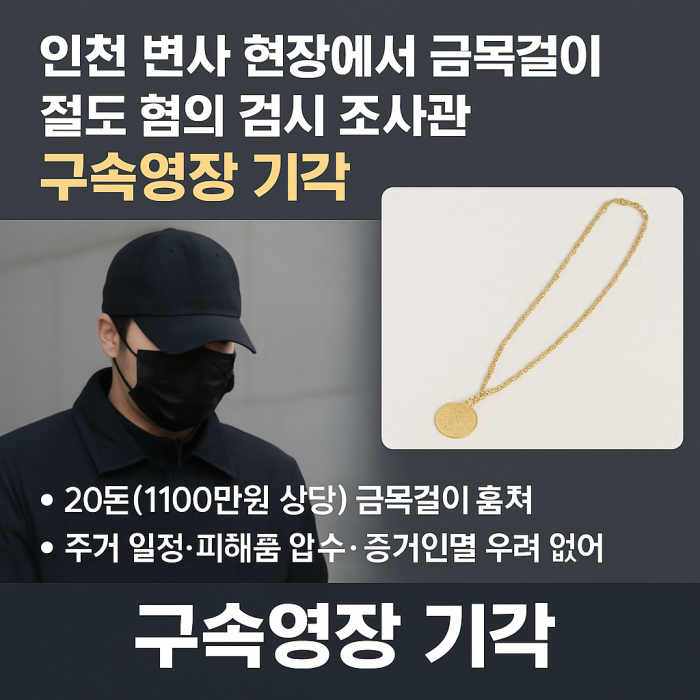 제목 | 인천 변사 현장 금목걸이 절도 혐의 검시 조사관, 구속영장 기각 | ||||